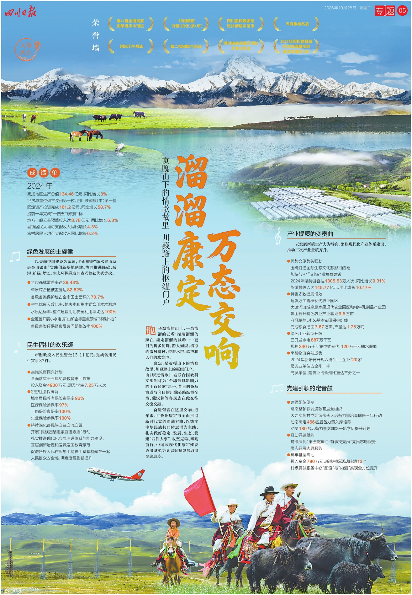 奋进强音在这里交响。近年来,甘孜州康定市全面贯彻新时代党的治藏方略,以铸牢中华民族共同体意识为主线,扎实做好稳定、发展、生态、党建“四件大事”,攻坚克难、砥砺前行,中国式现代化康定建设迈出坚实步伐,高质量发展取得显著进步。