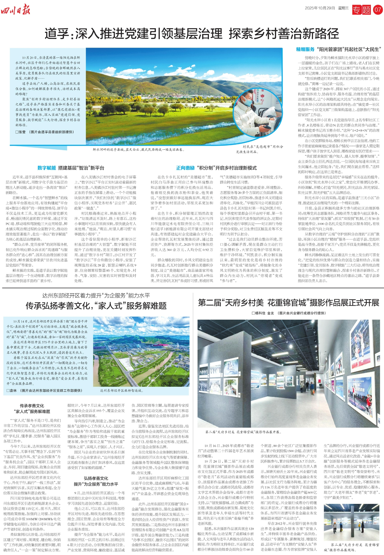 聚焦“创新乡村治理体系、走乡村善治之路”,道孚县严格落实省委和州委关于基层治理的各项决策部署,以“康巴党旗红·有事找党员”为载体,深入实施“党建引领、党员服务、数字赋能”三大行动,探索乡村善治新路径。