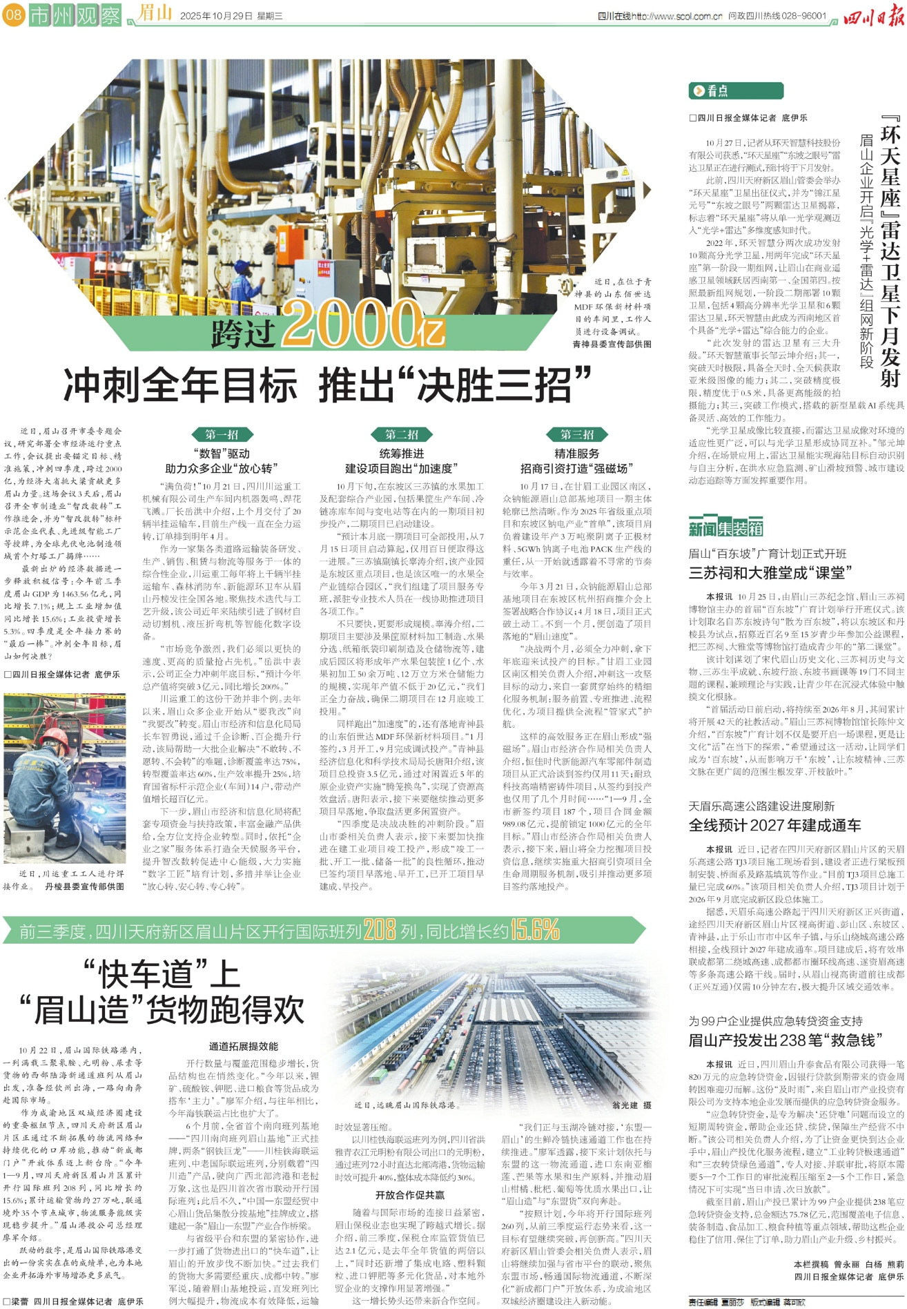 作为成渝地区双城经济圈建设的重要枢纽节点,四川天府新区眉山片区正通过不断拓展的物流网络和持续优化的口岸功能,推动“新成都门户”开放体系迈上新台阶。“今年1—9月,四川天府新区眉山片区累计开行国际班列208列,同比增长约15.6%;累计运输货物约27万吨,联通境外35个节点城市,物流服务能级实现稳步提升。”眉山港投公司总经理廖军介绍。