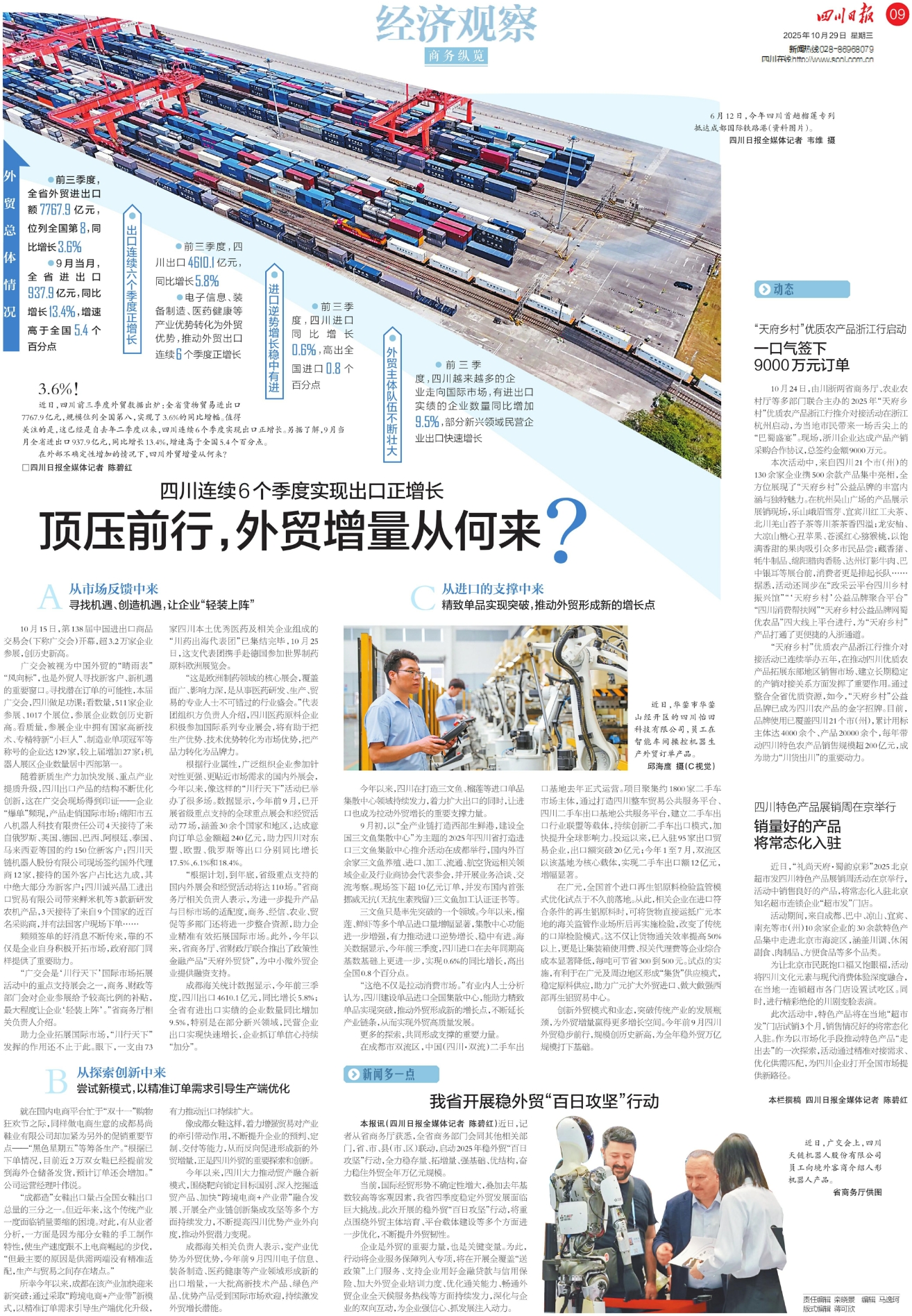 本报讯(四川日报全媒体记者 陈碧红)近日,记者从省商务厅获悉,全省商务部门会同其他相关部门,省、市、县(市、区)联动,启动2025年稳外贸“百日攻坚”行动,全力稳存量、拓增量、强基础、优结构,奋力稳住外贸全年万亿元规模。