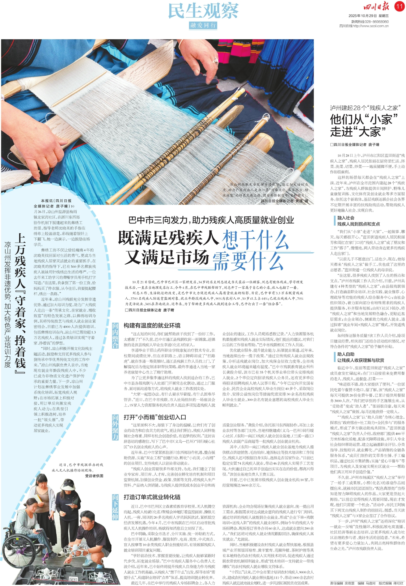彝绣工坊不仅让曾经瘫痪4年的沈晓英找回面对生活的勇气,更成为当地残疾人居家灵活就业的重要抓手。在沈晓英的指导下,已有560多名彝族残疾人姐妹用针线绣出生活的尊严。一位去年来工坊学习的聋哑学员用手机打字写道:“在这里,我拿到了第一份工资,给妈妈买了件衣服。从今往后,我要挺起腰杆,绣出一条路。”