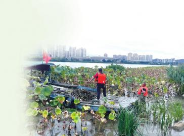 航拍遂宁中心城区。城市与涪江相拥,江畔湿地绿意盎然。 刘作鹏 摄遂宁市船山区圣莲岛,工作人员正在巡河。四川日报全媒体记者 阚莹莹 摄