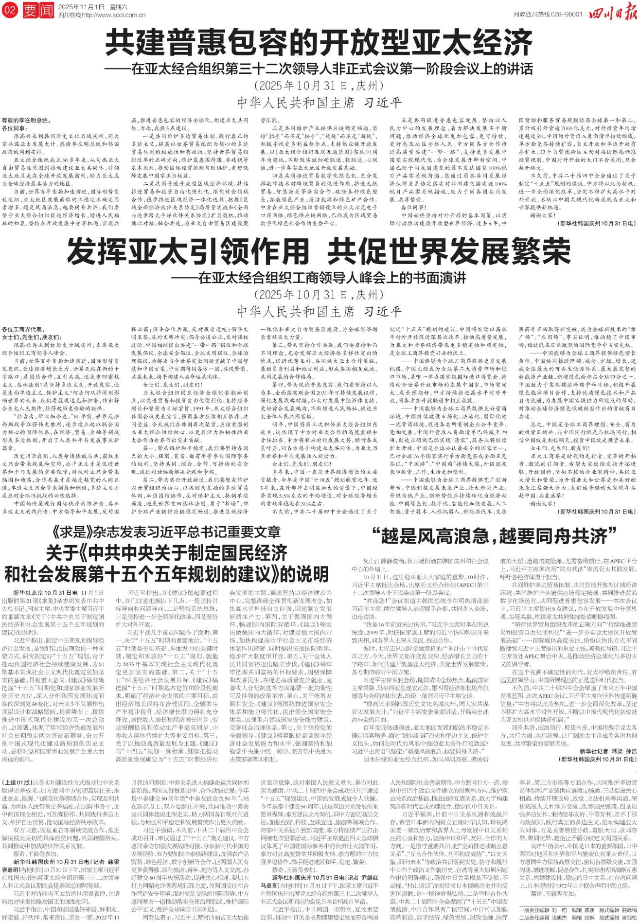习近平强调,不久前,中共二十届四中全会成功召开,审议通过了“十五五”规划建议。中方愿同泰方加强发展战略对接,分享新时代中国的发展经验。双方要加快中泰铁路建设,加强农产品贸易、绿色经济、数字创新等合作,让两国人民有更多获得感。深化旅游、青年、地方等人文交流,办好建交50周年庆祝活动,促进民心相通。要加大打击网赌电诈等跨境犯罪力度,为两国交往和合作营造安全环境。面对变乱交织的国际形势,中方愿同泰方一道推动落实全球治理倡议,维护国际公平正义,维护全球南方共同利益。