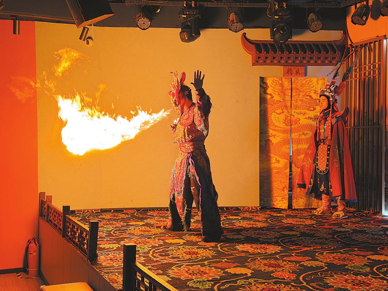 此外,节目中还增加了互动环节,茶艺师下台为观众掺茶,变脸演员在观众面前近距离变换脸谱。“我们前几天才接待了一个法国团,以前这些团队会去大剧场,现在觉得我们这儿性价比高,还能互动,都愿意来。”陈诚说。