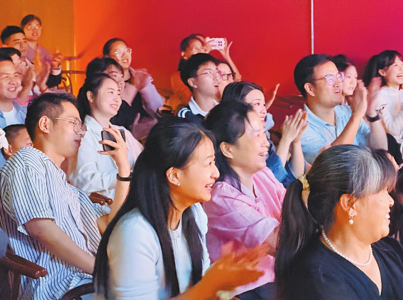 我们在现场看到,当传统武戏《三岔口》上演,两名演员在黑夜中摸索打斗时,一段谍战片的背景音乐突然响起。“用这个作为背景音乐,主要想直观展示剧中的偷盗行为。”陈诚举例,今年暑期,剧团排演的《哪吒闹海》还融入了电影《哪吒2》中“从来生死都看淡”等台词,用年轻人熟悉的流行元素“翻译”传统剧情。此前,他们甚至在谢幕环节跳起了《大展鸿图》《科目三》等网红舞蹈,“观众的反响非常好。”