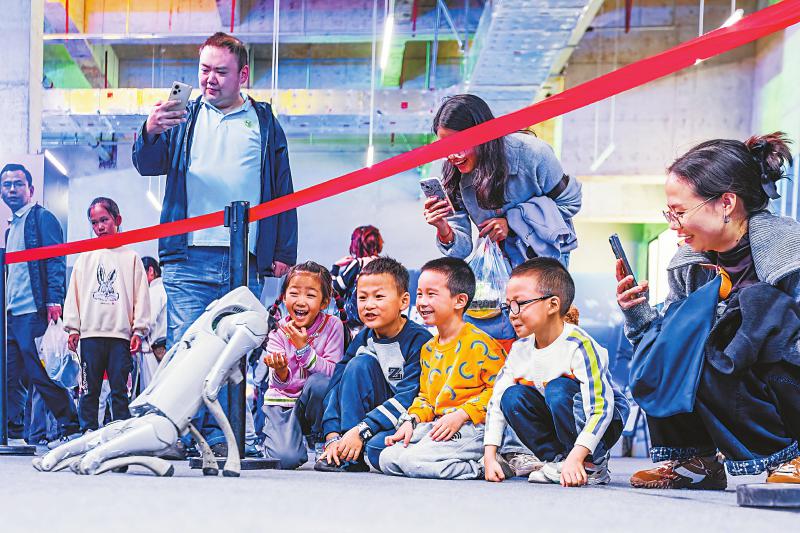 11月1日至2日,“智创乐动未来 机器人PartyDay”活动在成都劼人公园举办,具身机器人、AI等前沿科技齐聚,演艺观赏、互动体验与休闲娱乐交融,打造一场好玩、好逛、好看、好学的沉浸式科技狂欢,让不少家长和孩子感受到未来科技的乐趣。下图为观众与机器狗互动。 林漫 摄(C视觉)