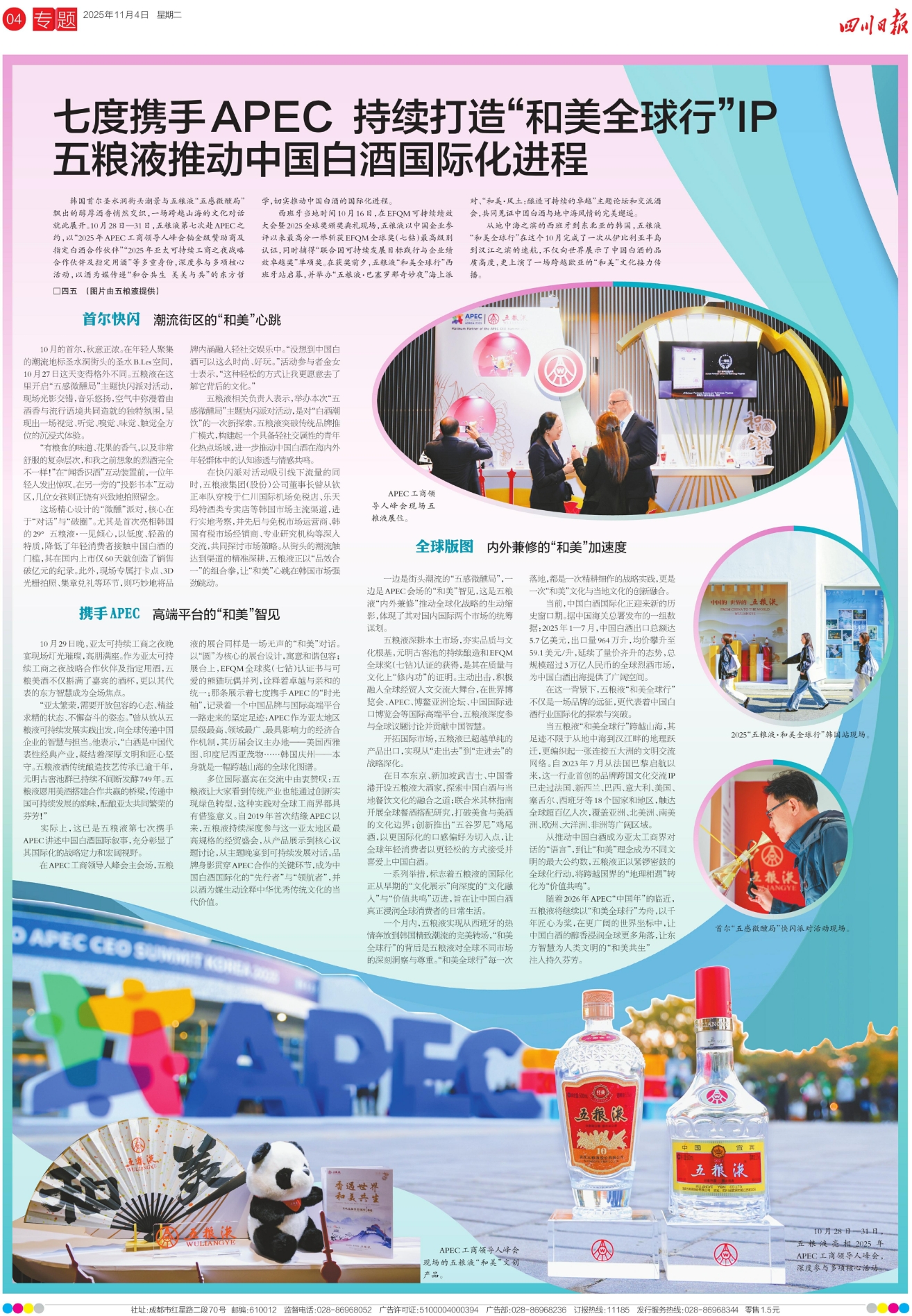 一边是街头潮流的“五感微醺局”,一边是APEC会场的“和美”智见,这是五粮液“内外兼修”推动全球化战略的生动缩影,体现了其对国内国际两个市场的统筹谋划。