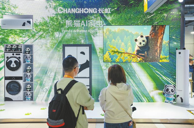电视机、洗衣机、冰箱、空调……这些常规家电产品,还能有什么新花样?在四川馆入口,记者看到整面墙变成了呆萌可爱的“熊猫乐园”,而上述这些家电则换了“造型”。作为长虹在国内首次亮相的熊猫AI家电,受到了国内外采购商和专业观众的喜爱。
