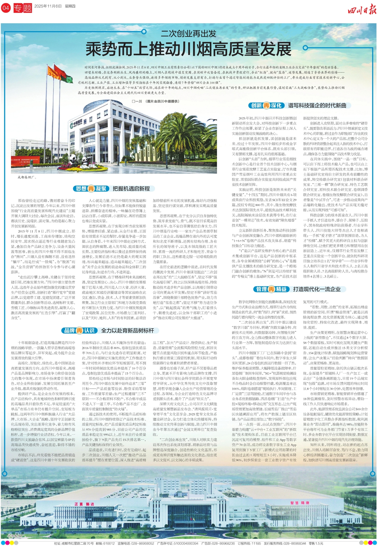 2025年初,四川中烟召开科技创新暨创新驱动再出发大会,对科技创新下一步重点工作作出部署,彰显了企业在新征程上深入实施创新驱动发展战略的决心。