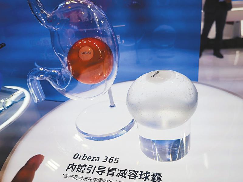在医疗器械及医药保健展区,美国波 士 顿 科 学 在 中 国 首 次 展 示 的Orbera365内镜引导胃减容球囊,成为场馆内的人气产品。