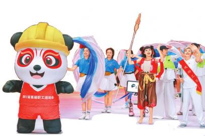 早在今年6月,四川省总工会就面向社会公开征集会歌、吉祥物、奖牌等设计方案,为这场体育盛会注入深厚的文化内涵。承载着巴蜀底蕴与职工精神的设计作品应运而生:会徽“腾飞”巧妙融合“四川SC”与“工”字,勾勒出拼搏的人形,寓意昂扬奋进;吉祥物“蜀工仔”以四川大熊猫为原型,头戴安全帽、手持“工”字造型火炬,奔跑的姿态象征全省职工在新时代浪潮中奋勇争先、一往无前、开拓进取的精神风貌;会歌《向梦而往》将劳动号子与追梦旋律相融,唱响“勇敢登场,必会闪亮”的劳动者心声;奖牌镌刻城市地标与“蜀工仔”形象,以蓝色为底,象征运动不息……