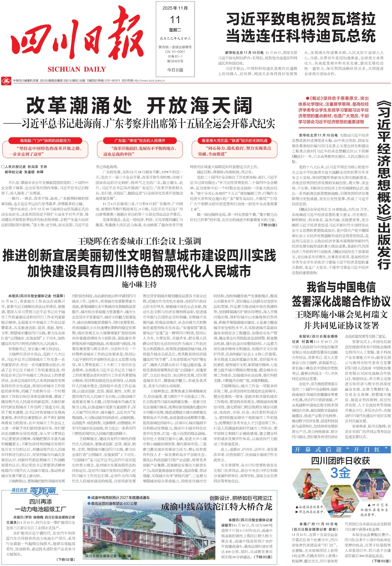 本报讯(四川日报全媒体记者 付真卿)11月10日,四川省人民政府与中国电信集团有限公司在成都签署深化战略合作协议。省委书记、省人大常委会主任王晓晖,省委副书记、省长施小琳会见中国电信党组书记、董事长柯瑞文一行,并共同见证协议签署。