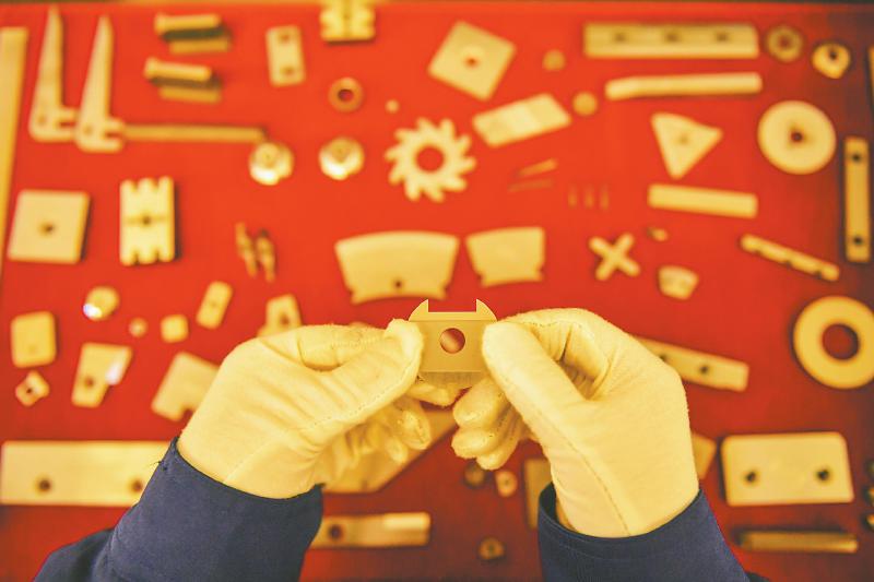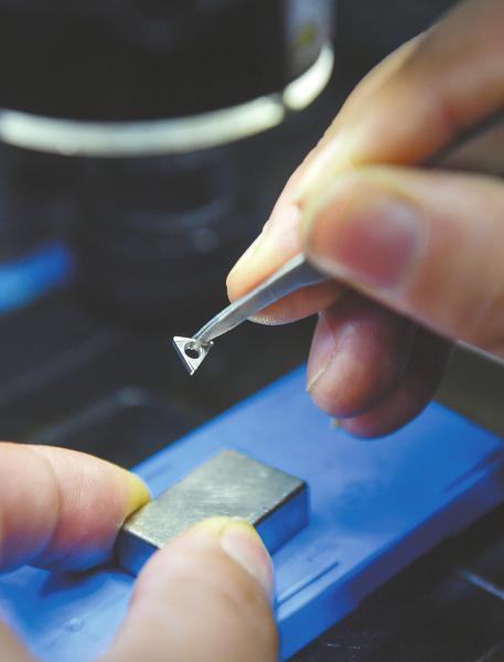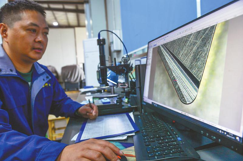 位于成都双流经开区的四川神工钨钢刀具有限公司研发生产的刀片,刀刃最小宽度仅0.02毫米,为高精密数控车床量身打造;最大单件产品接近30公斤,可适配大型机械加工等场景,实现“小而精”与“大而强”双重覆盖。目前,该企业年产刀片可达500万件,今年前三季度,刀具产品出货量同比增长8%,产品远销德国、日本等30多个国家和地区,满足电子信息、汽车制造、高端装备等领域的批量需求,国内外市场竞争力持续攀升。图为11月11日,在该公司车间,工作人员正在摆放各种刀片。 四川日报全媒体记者 李向雨 摄