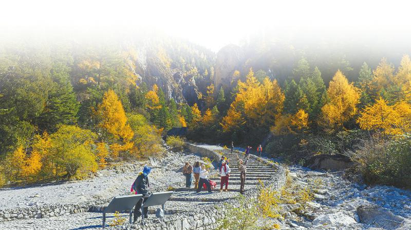 十一月十二日,许多游客通过九绵高速快捷抵达被誉为“深山故宫”的平武报恩寺。胡宇摄(C视觉)