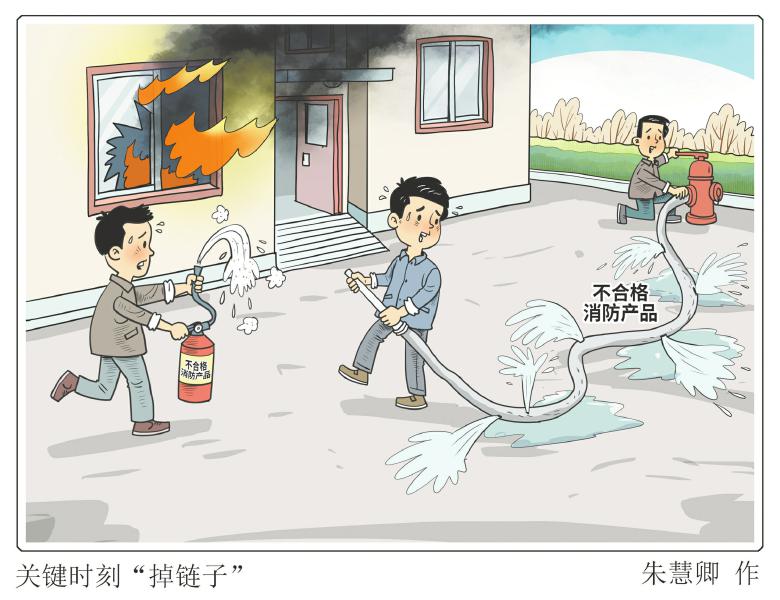 《中华人民共和国消防法》规定,禁止生产、销售或者使用不合格的消防产品以及国家明令淘汰的消防产品,且违反者将依法受到从重处罚。但从已有的一些报道来看,对末端经销商的罚款金额只有几千元,这样低廉的违法成本完全可能让不法之徒冒险牟利。消防产品质量事关群众生命财产安全,在加强源头管控的同时,还需进一步提高对末端治理的重视程度。相关部门需要进一步加大排查力度和惩罚力度,让厂家不敢生产、让商家不能销售。只有彻底铲除不合格消防器材的买卖,才能让消防产品真正成为“救命器材”,而非“致命杀手”。 张立峰/文 朱慧卿/图