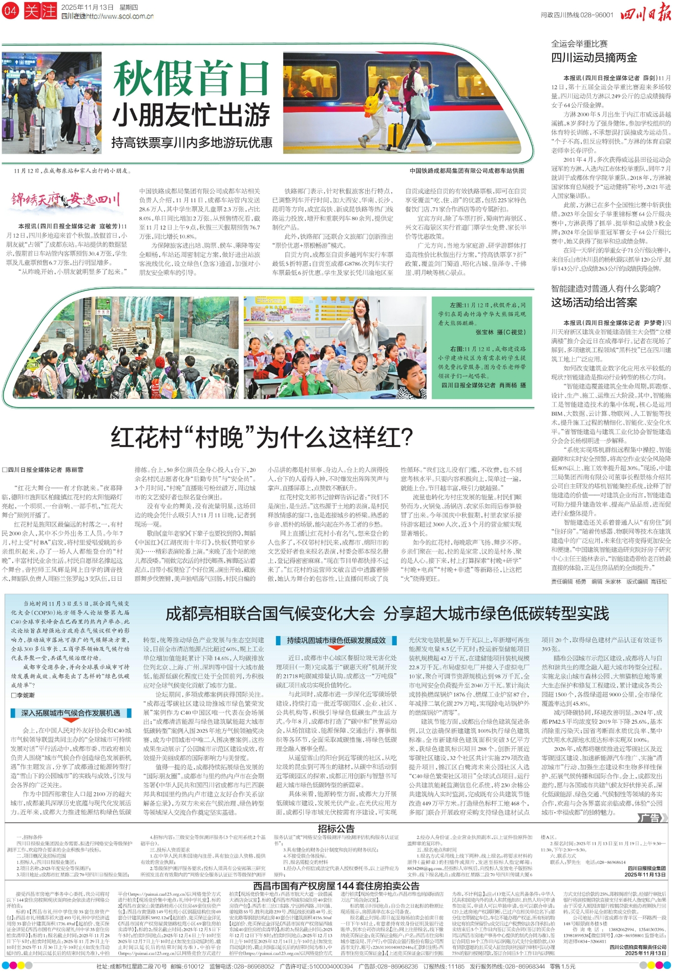 “从昨晚开始,小朋友就明显多了起来。”中国铁路成都局集团有限公司成都车站相关负责人介绍,11月11日,成都车站管内发送28.6万人,其中学生票及儿童票2.3万张,占比8.0%,单日同比增加2万张。从预售情况看,截至11月12日上午9点,秋假三天假期预售76.7万张,同比增长10.8%。