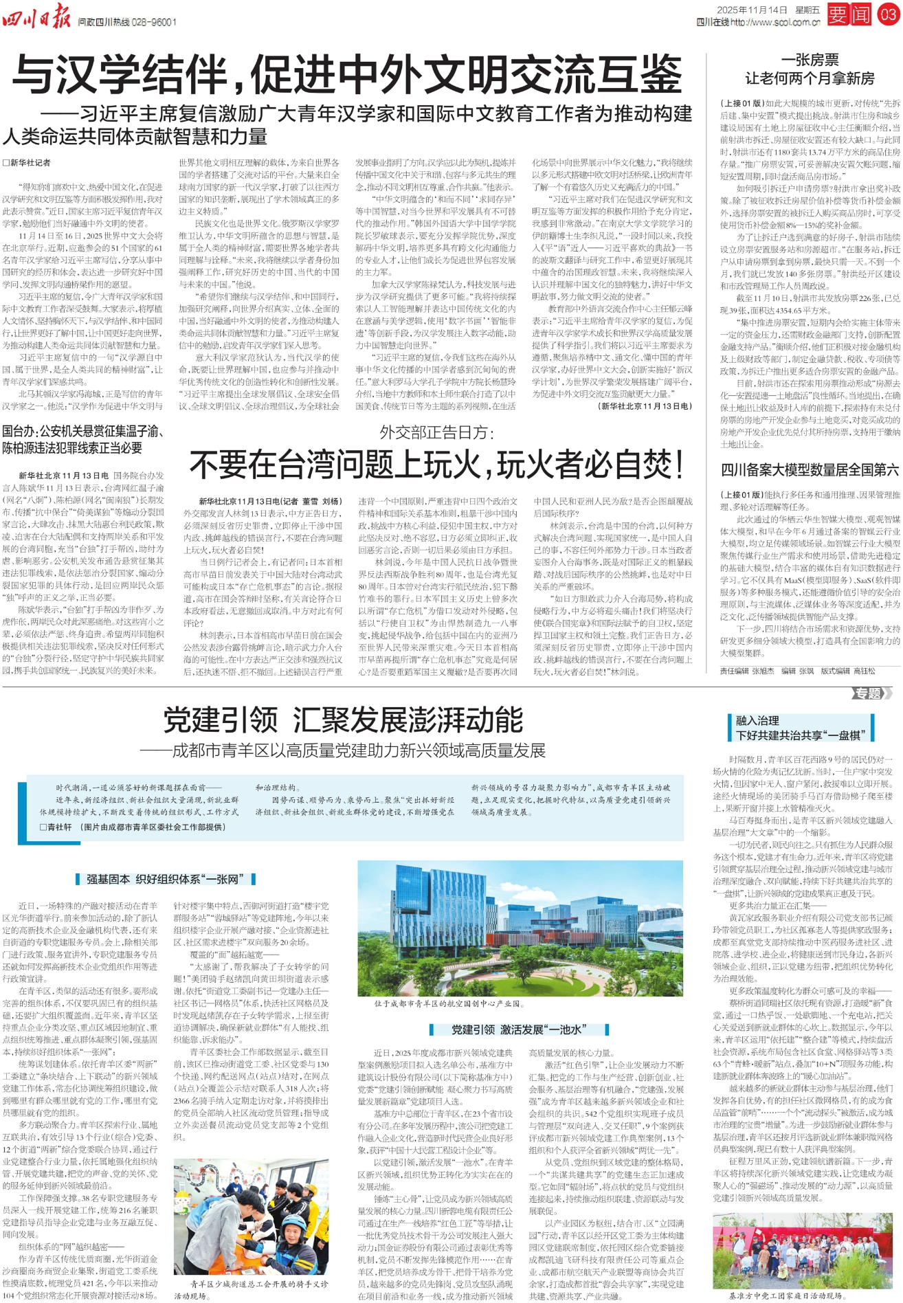 教育部中外语言交流合作中心主任郁云峰表示:“习近平主席给青年汉学家的复信,为促进青年汉学家学术成长和世界汉学高质量发展提供了科学指引。我们将以习近平主席要求为遵循,聚焦培养精中文、通文化、懂中国的青年汉学家,办好世界中文大会,创新实施好‘新汉学计划’,为世界汉学繁荣发展搭建广阔平台,为促进中外文明交流互鉴贡献更大力量。”