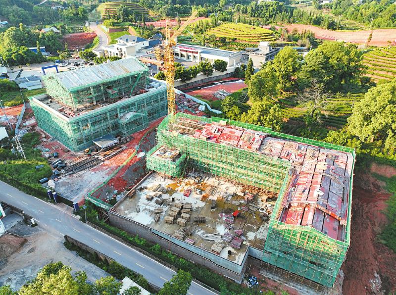 记者在项目所在地梅岭村见到梅岭村产业党委书记陈超华时,他刚从项目“三中心”(农村电商中心、便民交易中心、护国文化中心)的建设现场回来。“今天这雨,断断续续下了快一天了。”陈超华介绍,川南山区降水频繁,给施工造成了不小的影响。