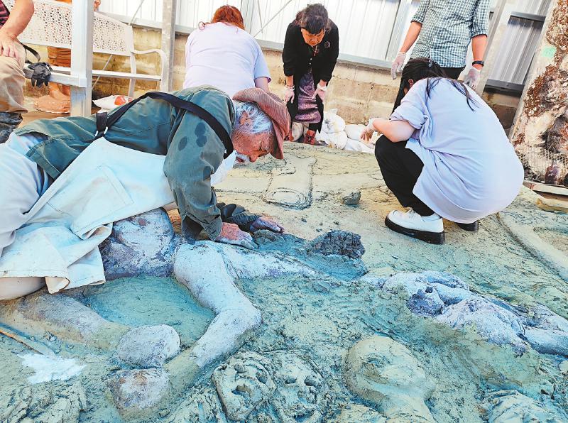 金城实告诉访问团成员,本次创作的“重庆大轰炸纪念壁雕”高约3米、宽约4米,展现的是在日军战机轰炸下,中国民众流离失所、悲痛呐喊的场景。完成后,将与其他壁雕放在一起,形成长卷,记录日军在二战中对平民犯下的罪行。