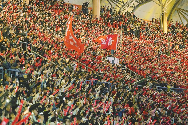 绿茵热浪 11月9日晚,自贡灯城燊龙队以2∶0战胜泸州窖香队。现场球迷为球队倾情助威。