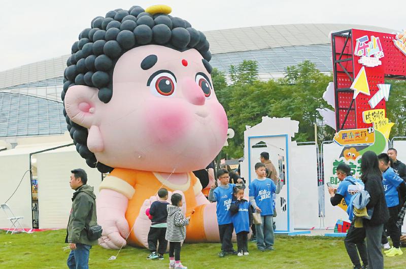 市井烟火 ▶11月8日,乐山味道非常队主场迎战眉山射天狼队。场外美食打卡区人气十足,不少球迷与乐山大佛玩偶合影留念。