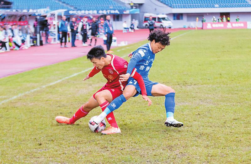 草根竞技 11月10日,遂宁舍得干队与广安板楯蛮队在比赛中激烈拼抢。