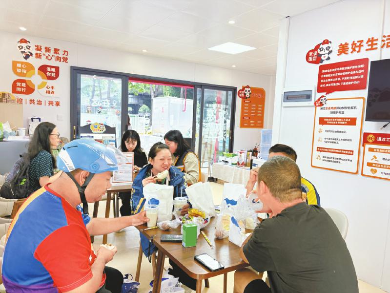 这份温暖,源自骑手们的建议。今年4月以来,暖新驿站收集到新就业群体“希望能在驿站吃上肉包子”“增加休息区域”等诉求50余条。该街道联合工会、社区、企业展开调研,发现“用餐难”是骑手、快递员的普遍痛点。在四川省职工发展基金会的支持下,暖新驿站将每周三定为爱心早餐日,同步开通线上电子券兑换和线下爱心餐包领取双通道。