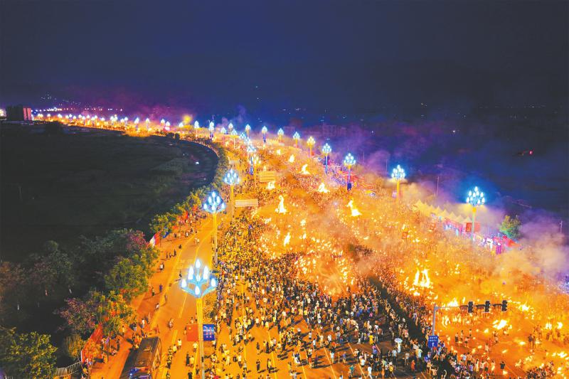 2025年7月18日,激情火把照亮凉山夜空。 王荣升 摄