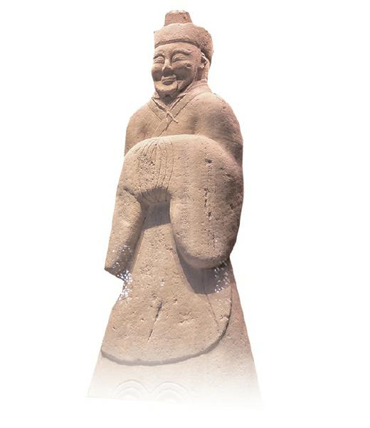 顺着伏龙观42级石阶拾级而上,就能看到主持修建都江堰的李冰的石像。这座石像雕造于东汉建宁元年(公元168年),两袖和衣襟上镌刻有38字隶书题记。其中,右袖刻有“尹龙长陈壹造三神石人珍水万世焉”字样。值得一提的是,此处用“珍水万世”而非“镇水万世”,体现了李冰和后世治水者顺应自然、珍水爱水的生态观。