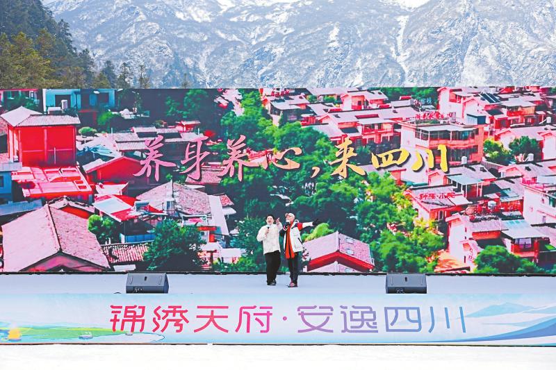 追着暖阳向南,感受另一面的四川。散打评书表演艺术家李伯清和弟子陈功,将攀西20℃冬日里的“安逸康养”徐徐道来,还有百菜百味的“天府旅游美食”和百家特色旅游住宿满足游客“养身养心就来四川”的需求。