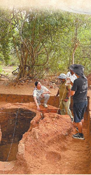 斯里兰卡的夏天,气温高达40℃。考古队员在工地上搭了简单的棚子,每天早上9点便在探方里埋头苦干。工地离遗址有一小时车程,午饭只能是早上带出来的冷餐。幸好,工地不远处偶尔可见野生大象悠闲散步,不时还可以看到其他动物飞奔而过;得益于当地特有的饮茶习惯,每天还多了两次茶歇时间,这些都让队员们在炎炎烈日中多了几番欣喜。