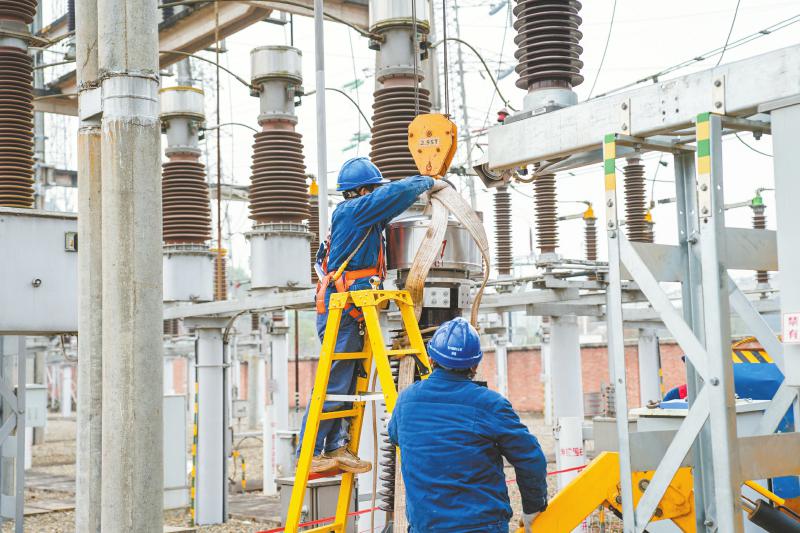 随着气温走低,迎峰度冬保供电工作陆续展开。近日,资阳广惠变电站内,国网资阳供电公司工作人员正在进行110千伏电流互感器更换作业。 黄林龙 摄