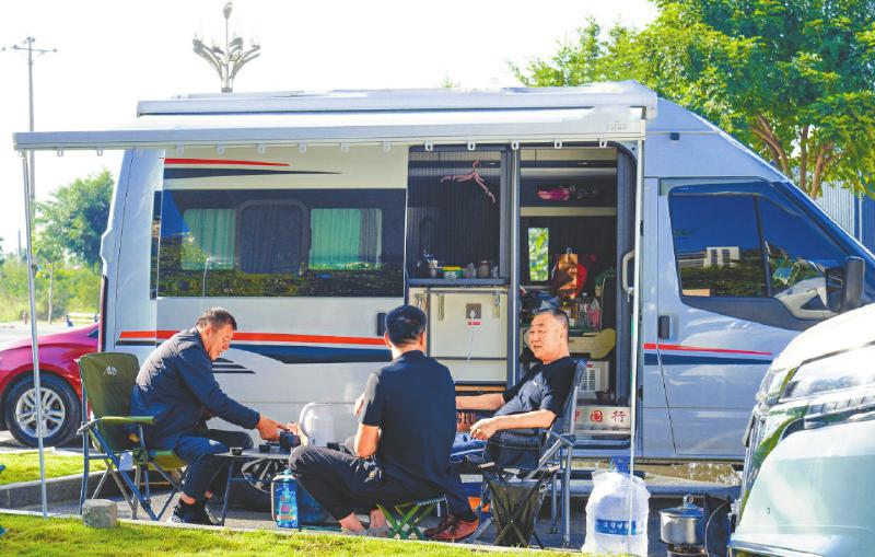 停车场另一头,来自贵州的张鲲一家正在准备早餐。一家人原本计划开着房车去云南,路过攀枝花想“顺路看看”,这一看就是两个月,“被阳光绊住了脚。”