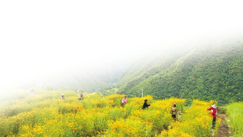 12月12日,阿坝州金川县城中心的雪菊销售点上,一朵朵指甲盖大小的金黄色雪菊,散发出阵阵花香。它们来自金川县二嘎里乡二嘎里村——去年,华电四川公司投入45万元,与金川县共建高原雪菊种植基地50亩。今年,基地面积已经扩大到75亩,11月份刚刚收获完毕,创下5000斤干花的新纪录。