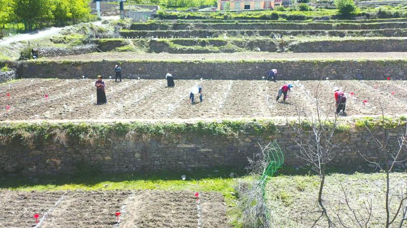 科研人员与当地村民在夏繁基地劳作(资料图片)。马尔康市委宣传部供图