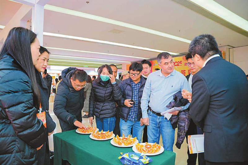 “这种带玫瑰香气的‘红宝石’,在泰国卖得好。”12月18日,内江市资中县,2025年资中血橙营销大会现场,泰国客商法蒂雅·苏万马利一边认真记录今年早熟、中熟、晚熟血橙的采摘时间,一边通过翻译与种植户交流。“今天先签1000吨早熟品种,等后续的中熟、晚熟品种上市,还会继续加单……”