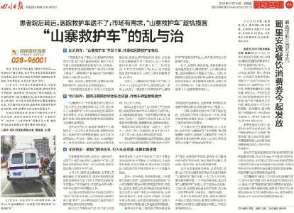 在四川日报全媒体的持续报道引发公众关注的同时,12月20日晚,央视新闻频道播出《转“患”之路》节目,呼吁建立一条规范安全的患者转运通道。主持人白岩松在节目中认为,让老百姓清清楚楚地知道打哪个电话,明明白白知道坐什么车、花多少钱,让转院的家庭在最需要的时候,能及时来一辆坐得起、有保障的救护车。为此,相关的改革必须争分夺秒,期待接下来各方的行动能来得更快一些。
