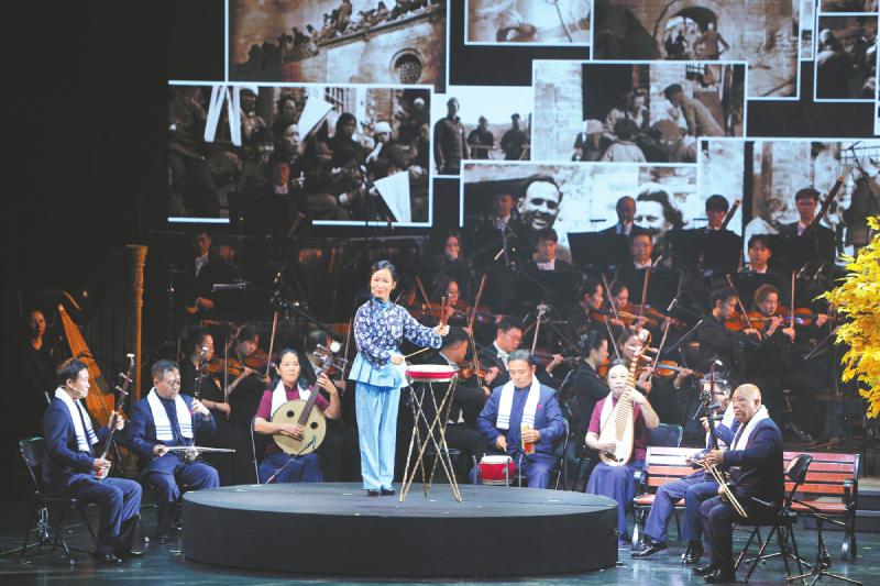 很多观众对《情定泸定桥》印象深刻,还在于其面貌一新的曲艺形式。四川扬琴原本是坐唱,主创团队将其“洋化”,不仅改为站唱,还带上了一定的歌剧表演特色和状态。黄宏说,经过这样一番转化,扬琴也呈现出明亮、明朗的艺术风格,其表现力不输于一些歌剧作品。