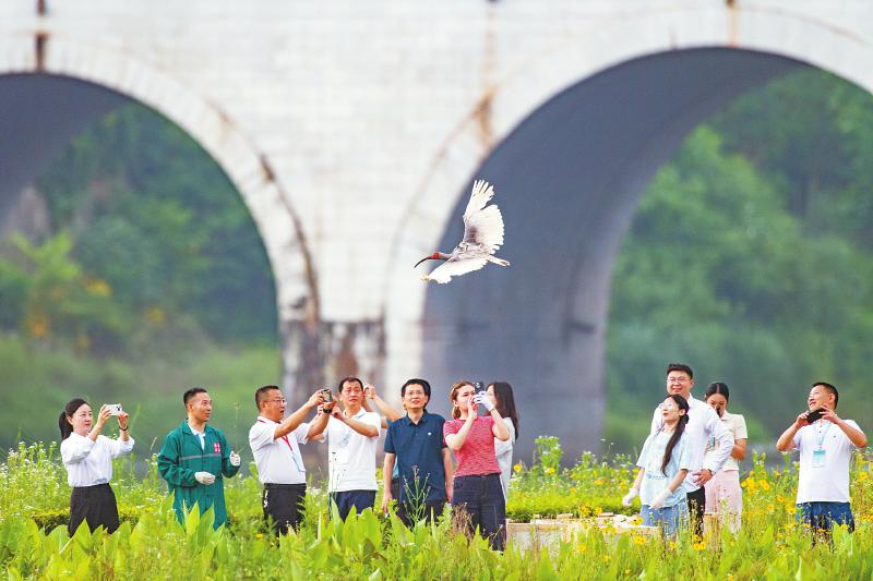 放飞朱鹮 5月22日,乐山市沐川县湿地公园,12只经过严格筛选和仿生态野化训练的朱鹮飞向大自然,开启全新的野外生活。这是西南地区首次成功实施朱鹮野化放飞。