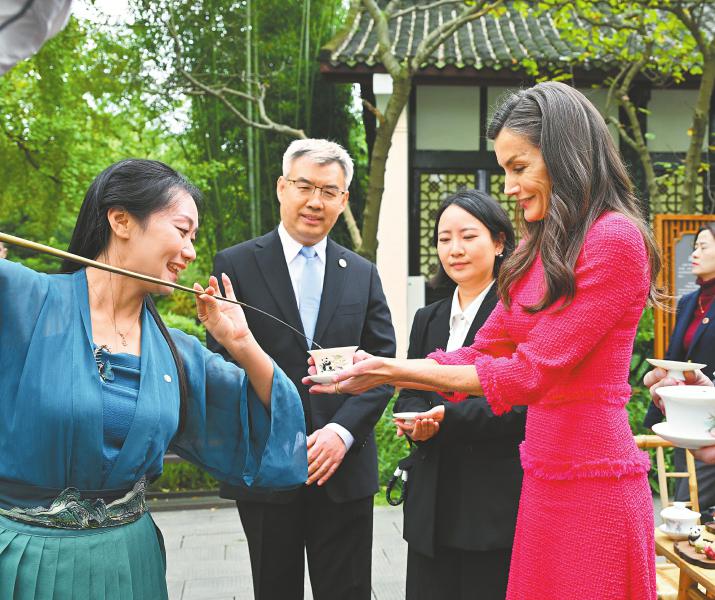品味川茶 茶,这一源于中国的饮品,不仅在中国深受喜爱,更在全球范围内拥有众多拥趸。11月11日,西班牙王后莱蒂西娅(右一)在成都望江楼公园体验川派中国茶。