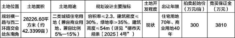 德阳市规划横一路与西二环路交会处东南角国有建设用地使用权拍卖出让公告