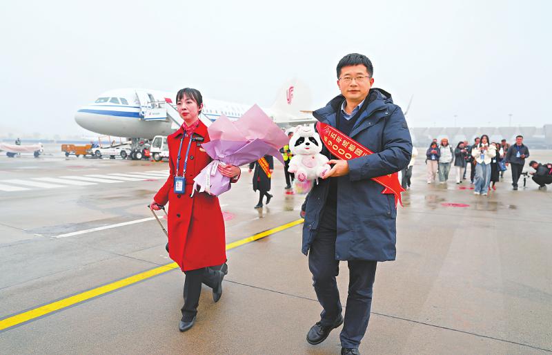 本报讯(四川日报全媒体记者 兰珍 熊晓雨)2025年12月31日,成都国际航空枢纽迎来2025年的第9000万名旅客,实现年旅客吞吐量历史性跨越。这不仅标志着成都国际航空枢纽“两场一体”运营迈上新台阶,更为成渝地区双城经济圈建设和四川对外开放注入强劲动能。