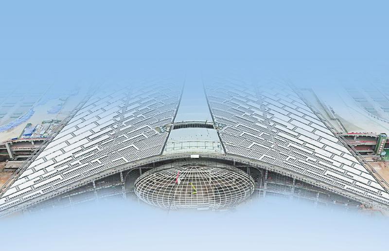 目前,车站已经初具雏形。南北两端的非向心椭球形钢网壳结构——“凤凰眼”是天府站候车厅空间的主要视觉焦点,幕墙表面由2515块各种规格尺寸的幕墙玻璃覆盖。“凤凰眼”施工中,引入复杂空间可视化三维放线等技术,确保每一个钢构件都能精准找到自己的位置。