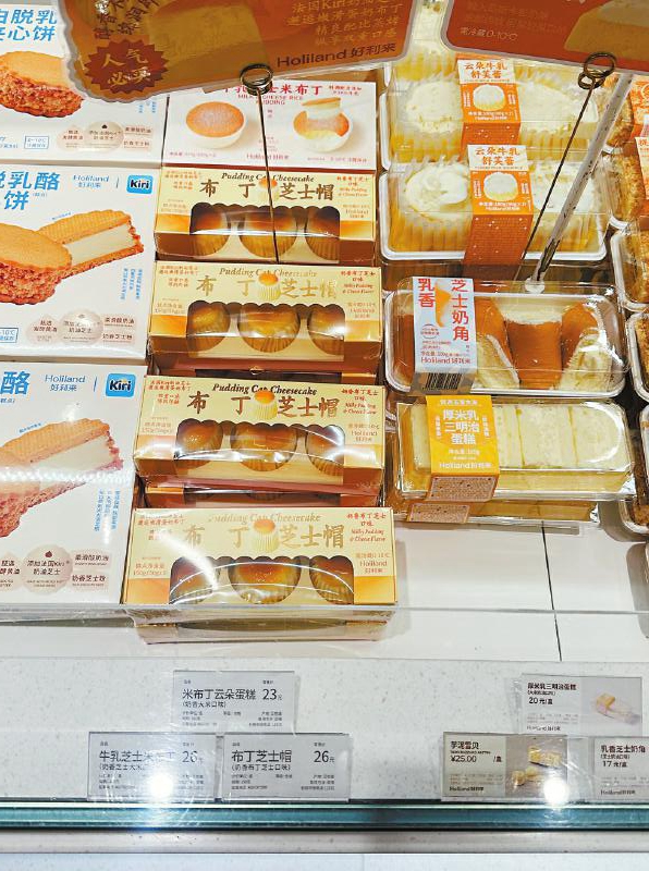 150克的米布丁云朵蛋糕23元、150克的布丁芝士帽26元、一盒联名款半熟芝士40元……在成都市青羊区的好利来清江西路店,记者看到货架上摆放着一个个包装精美的面包,单价多在20元到40元之间。在武侯区又巳面包店,该店的主打产品单价也在二三十元:苹果修颂19元,自磨黑麦果干38元,龙眼蜂蜜面包20元……