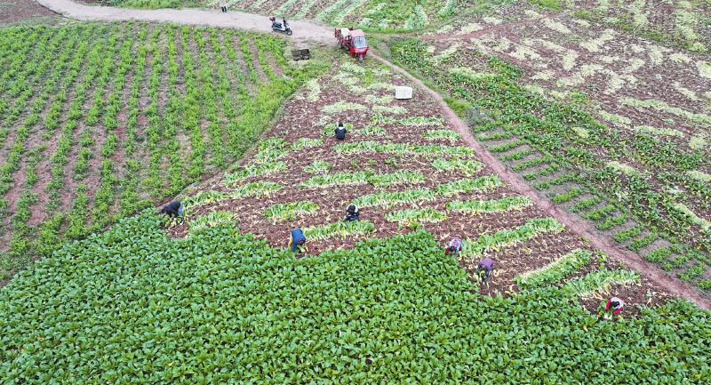 在自家20亩大头菜田里,村民彭吉梅一家四口正忙着采收成熟的大头菜。“都是新品种,产量比以前高,口感也更脆。”
