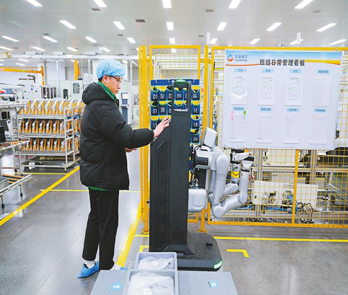 半年过去了,机器人的作业范围和能力都有大幅提升。记者在车间看到,人形机器人已经不再局限于走固定路线搬运单一物料,除了可以在多区域移动、处理多品类物料,还能与其他机器人协同作业。“目前,它们已经可以服务两三条产线,与产线工人进行配合。”潘昊说。