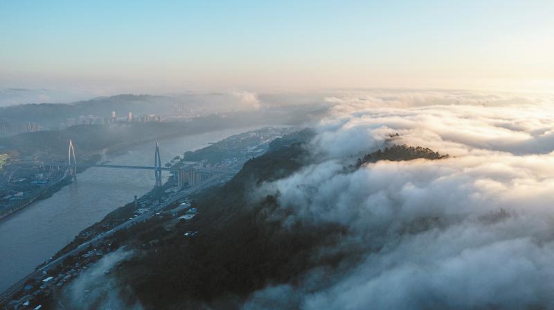 2021年9月29日 宜宾长江畔,浩荡的云雾奔腾翻涌,气象万千。