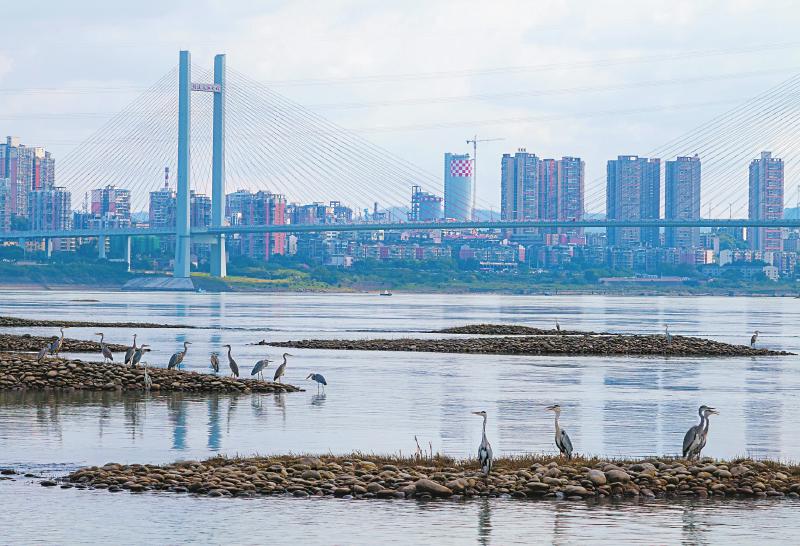 2024年10月22日 泸州长江畔,成群的苍鹭在此驻足小憩觅食。