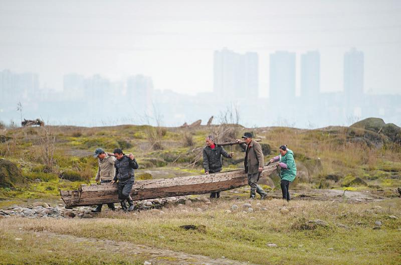 2019年12月18日 泸州市江阳区邻玉街道的渔民将渔船抬上岸退捕。当年,四川省共有6470艘渔船退捕。