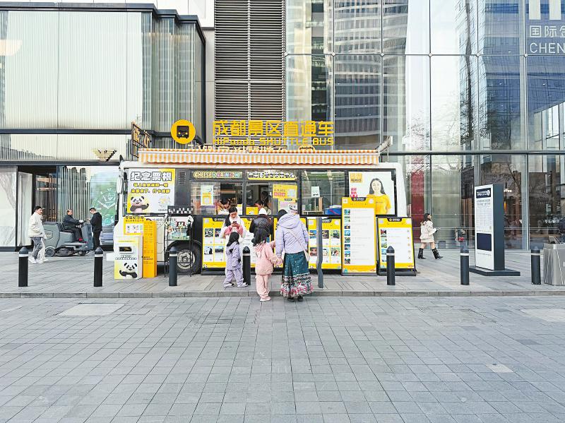 1月9日,成都春熙路,游客正在咨询前往景区的交通车。